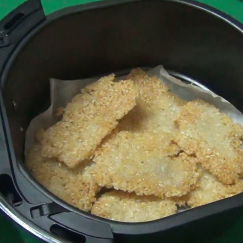 Sau khi cơm được tạo trên thành khuôn, bạn mang đi phơi khô dưới ánh nắng mặt trời trong năm giờ, sau đó có thể để nguyên miếng hoặc cắt nhỏ để chiên dễ dàng hơn. Lưu ý cứ sau 1,5 - 2 giờ, bạn phải lật cơm cho khô đều hai mặt.