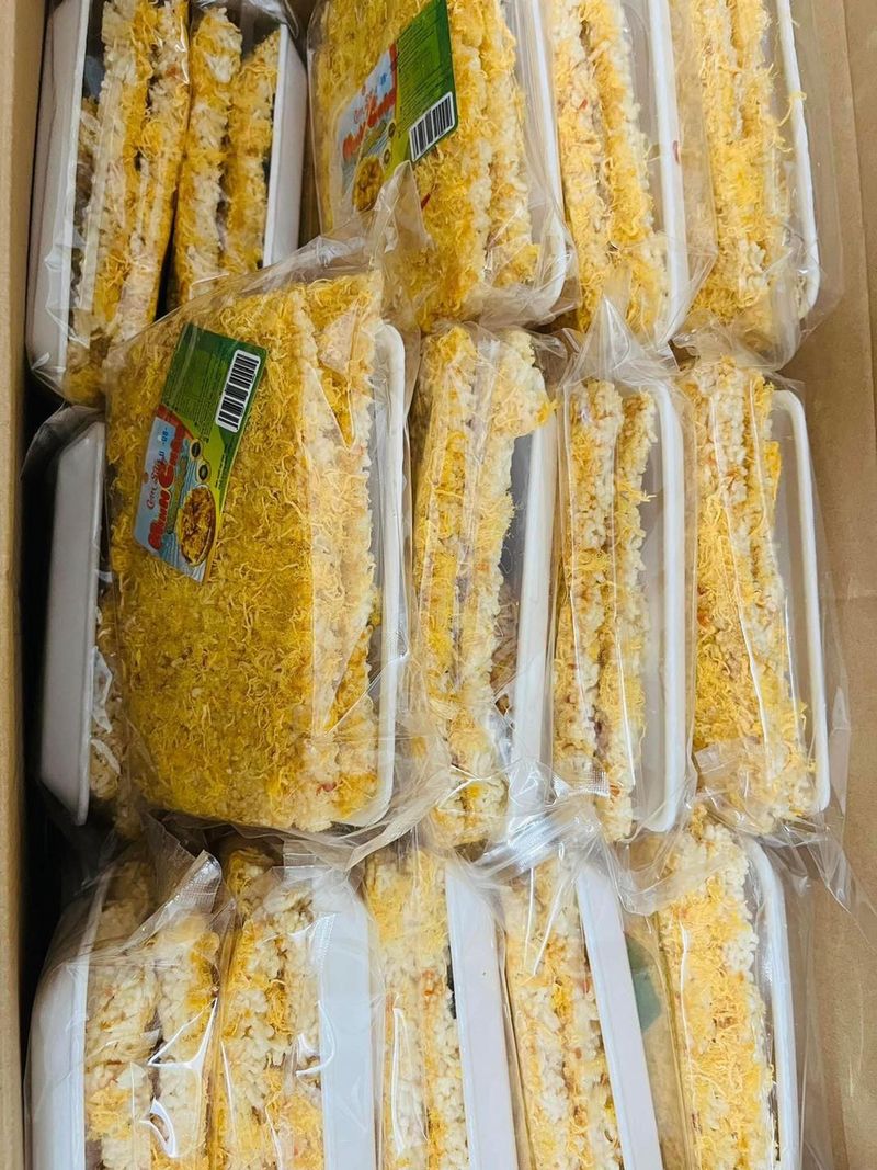 Cơm sấy được bảo quản trong túi zip kín đáo, người mua có thể dễ dàng quan sát thấy sản phẩm cơm cháy vàng ươm ngập chà bông vô cùng bắt mắt. Bao bì đảm bảo bảo quản cơm cháy chà bông trong thời gian dài, đặc biệt là vô cùng đẹp mắt để biếu tặng người thân, bạn bè.